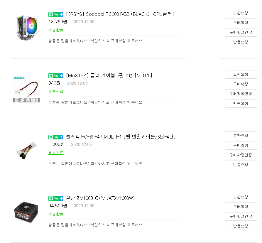 프로모션 코드로 부품별 6~10$ 할인된 가격으로 위 제품들을 구매하고, 그 외 CPU 쿨러, 1000w 파워는 국내에서 추가 구매했다.